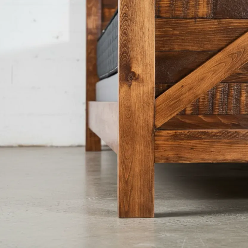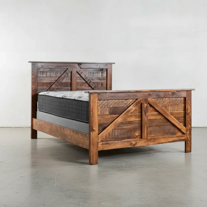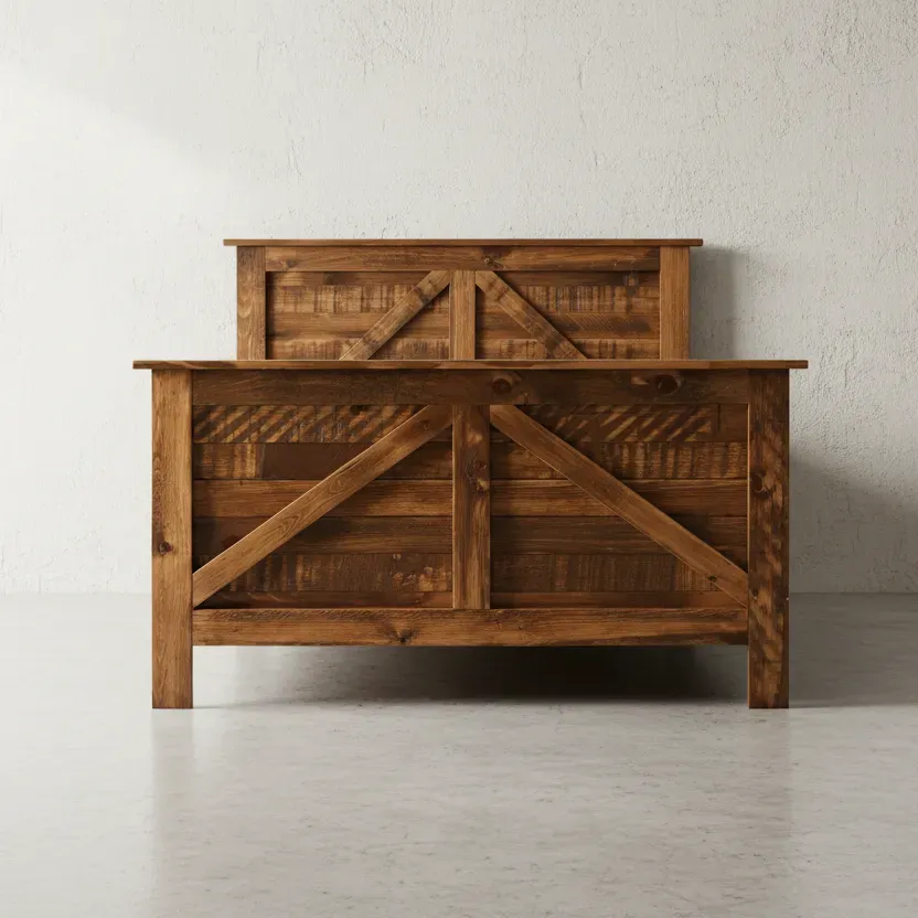 The **Barnboard Bed** transforms your bedroom into a cozy, rustic haven. This frame’s design focuses on highlighting the unique, textured finish that mimics the look of authentic reclaimed barn wood, adding unmatched character and warmth. The substantial headboard and footboard create a grounded, inviting focal point. For those who love the natural, unrefined beauty of wood with a story, this bed offers a stable, durable, and irresistibly charming foundation for restful sleep. Bring the beauty of the country indoors.