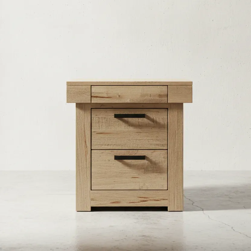 A chic, seamless nightstand with handle-less operation, perfect for creating an uncluttered, modern bedside look.