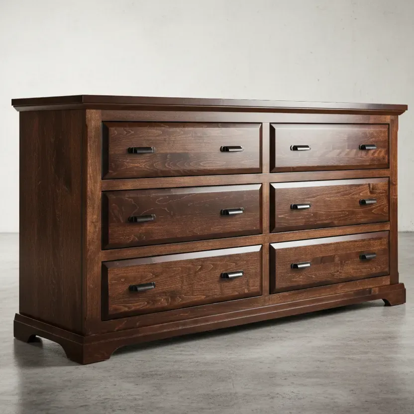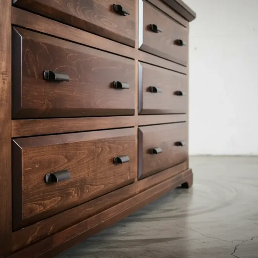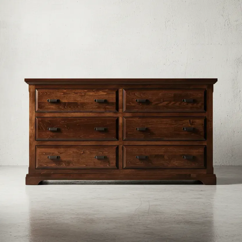 The **Chateau Dresser** is a magnificent piece of furniture, offering both substantial functionality and breathtaking traditional design. Its generous width provides a vast surface for decorative items, while the deep, elegantly framed drawers promise to accommodate even the most extensive wardrobe. Inspired by rustic French manor style, the dresser features classic curves, substantial moulding, and charming hardware that speak to its heirloom quality. This dresser is more than a storage unit—it’s a dramatic, grounding piece that brings a sense of refined history and timeless, unforced luxury to your master bedroom. Invest in a piece that will be cherished for generations.