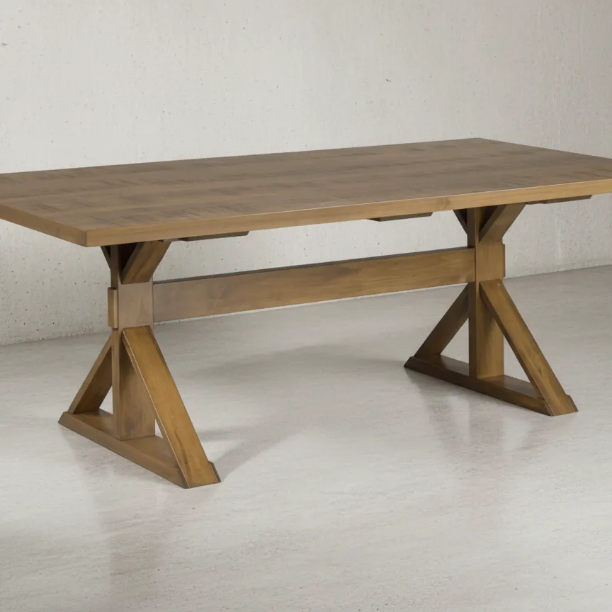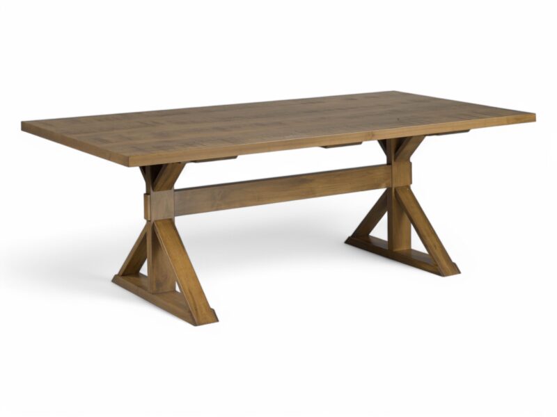 Experience the inviting presence of the Dalvik Table, a piece designed with both sturdy proportions and understated elegance. Its expansive rectangular top provides ample space, resting gracefully upon a distinctive base that speaks to enduring design. The table’s thoughtful construction features robust, angled supports connected by a central stretcher, creating a balanced and visually interesting foundation. This architectural form ensures stability while contributing a touch of classic craftsmanship to your home. Perfect for grand feasts or intimate conversations, the Dalvik Table serves as a versatile centerpiece. Its clean lines and substantial profile make it an ideal choice for a variety of interior aesthetics, promising both everyday functionality and lasting style.