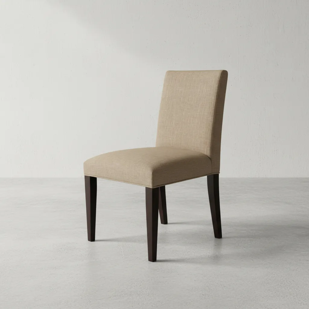 A refined and versatile upholstered chair, perfect for adding understated elegance to any dining or living space.