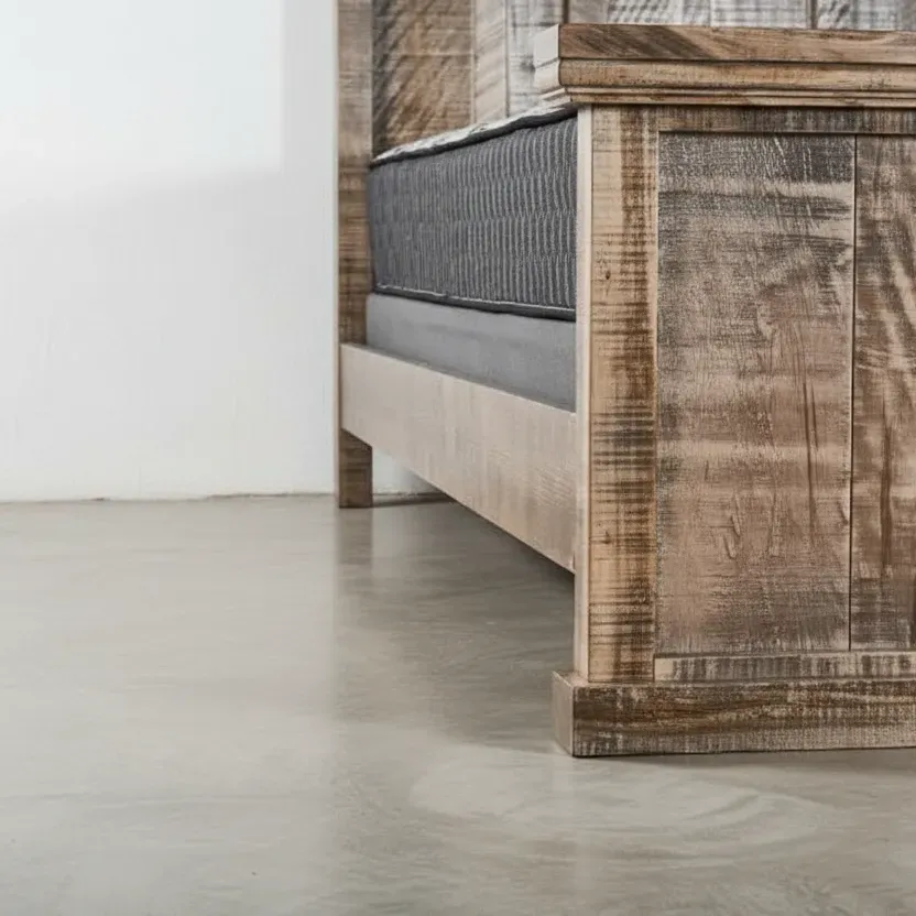 A strong, low-profile bed frame with a structured headboard, offering a bold and modern anchor for your room.