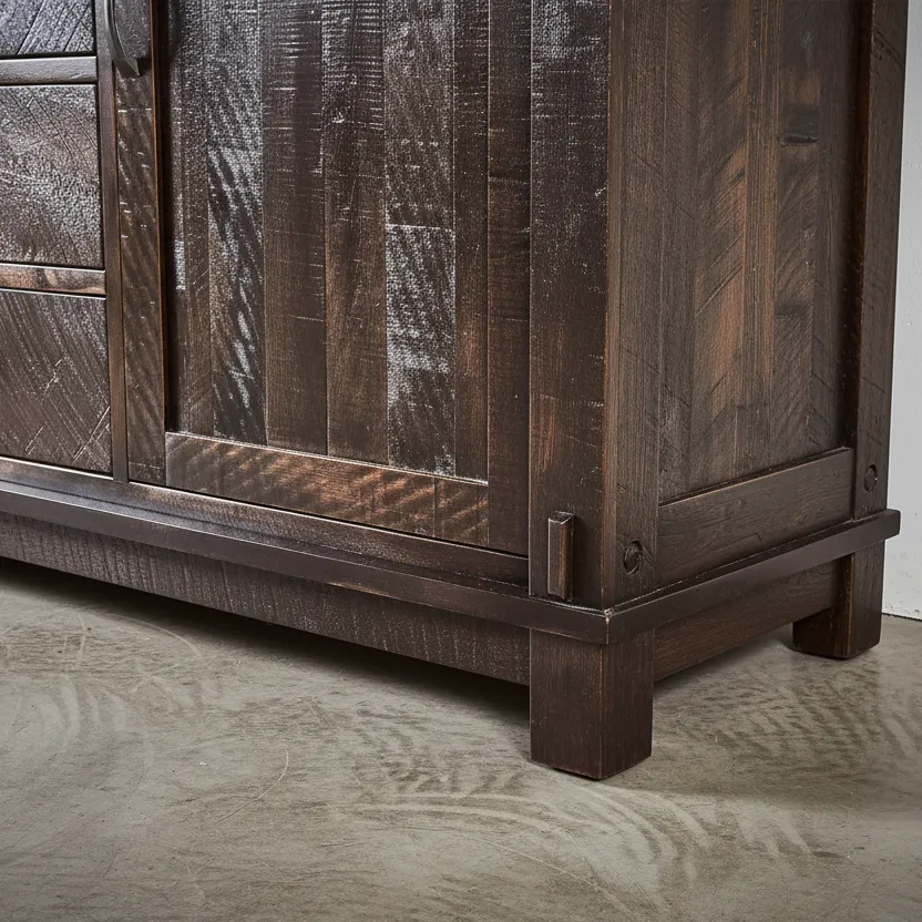 Elevate your space with this substantial cabinet, blending functional storage with an enduring, textured design.